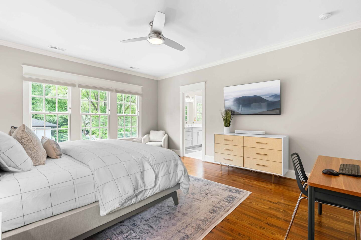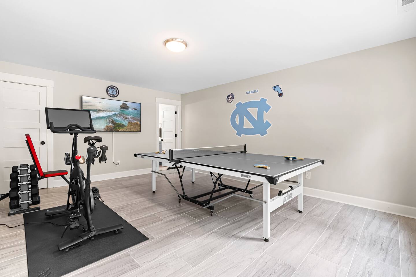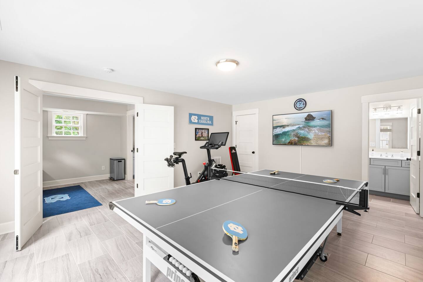 Walkable Location Steps to UNC campus, Franklin Street, and UNC Hospital—ideal for game days, graduations, family visits, or medical stays. Comfort First Three main-floor bedrooms, each with Sleep Number Smart Beds. Primary suite includes a spa-style bath and walk-in closet. Amenities Guests Love Chef’s kitchen, Tar Heel coffee bar, 65” Smart TV with Sonos, and fast fiber Wi-Fi. Extra Space to Enjoy Game room with ping pong and Peloton, third full bath, dedicated workspace, laundry, porch swing, fire pit, and outdoor dining.