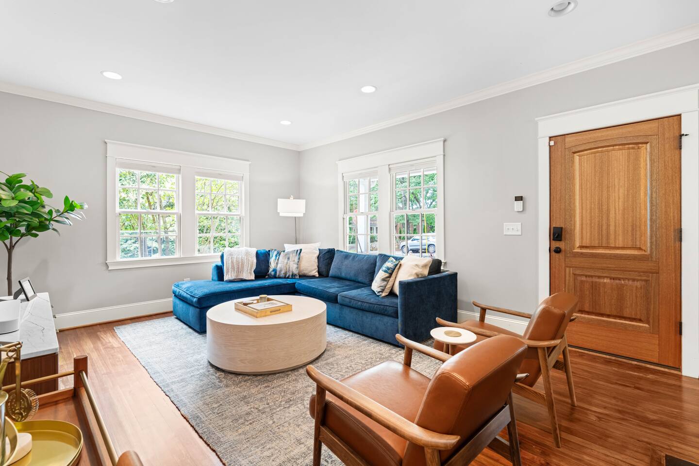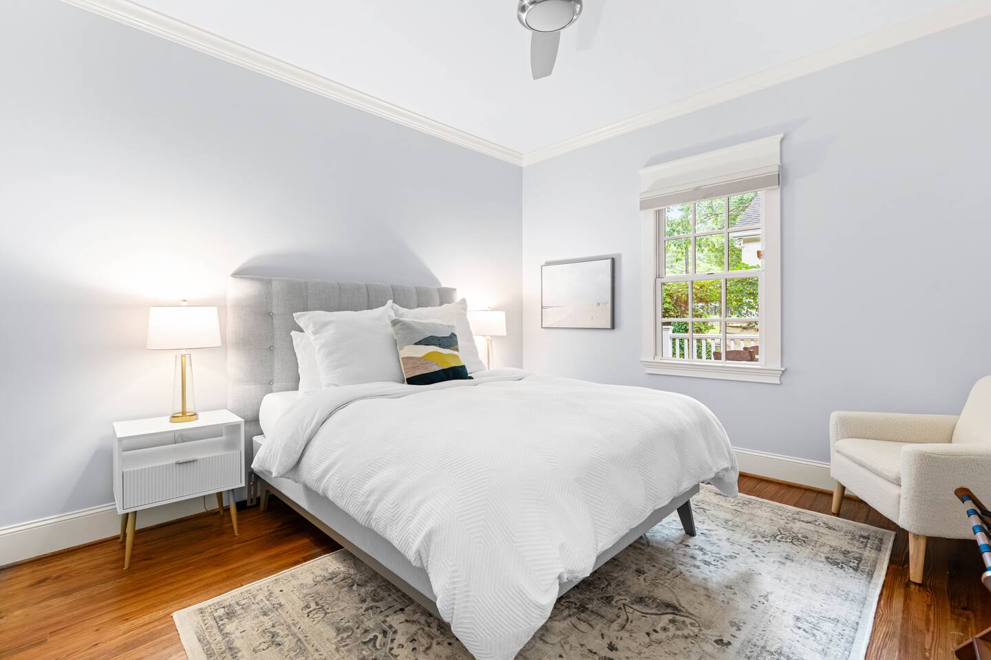 At just 5 miles from I-40, and under 20 miles to Raleigh Durham International Airport, this is turnkey travel. Lyft and Uber are readily available, or if you have a vehicle, there is free parking for two vehicles in the driveway behind the home.